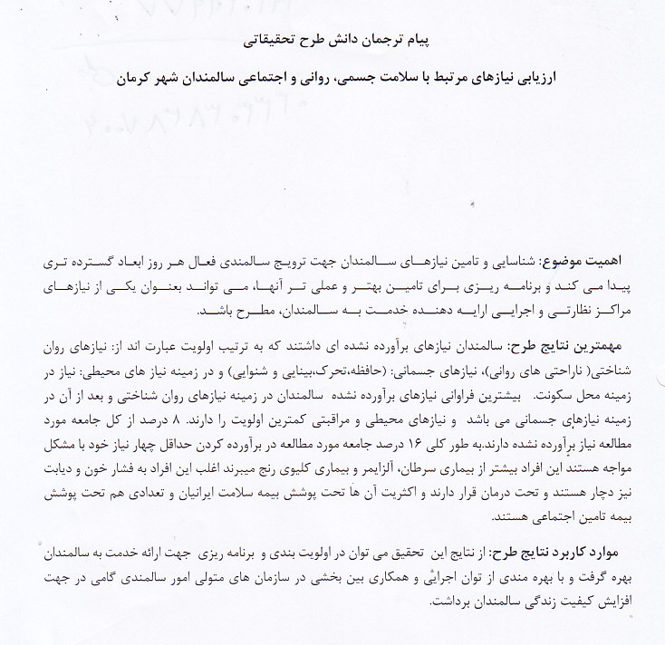 روانی و اجتماعی سالمندان شهر کرمان