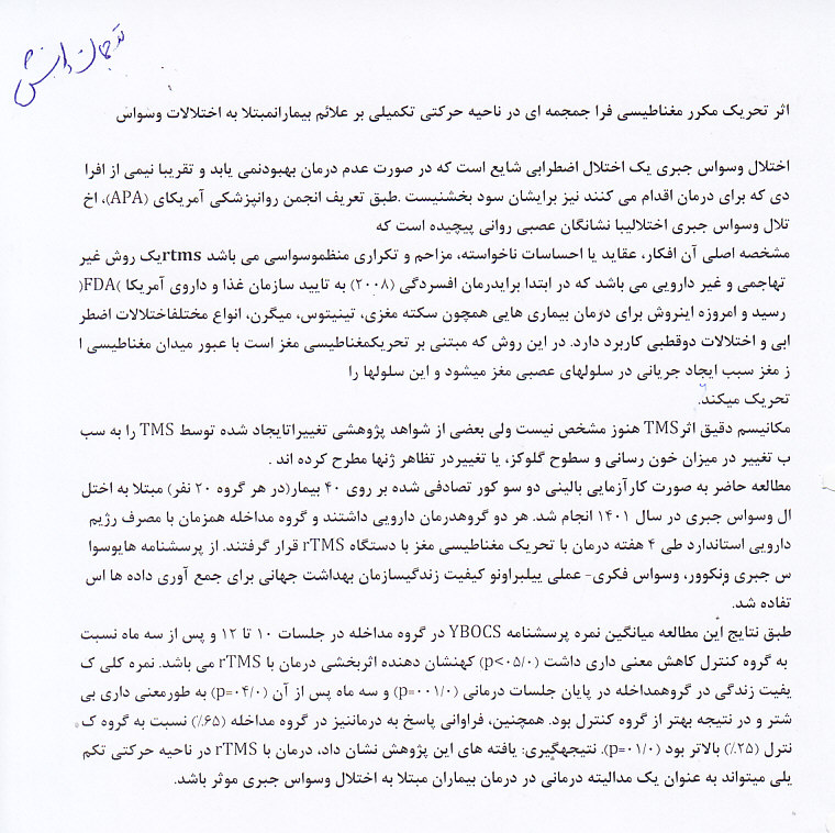 ناحیه حرکتی تکمیلی بر علائم بیماران مبتلا به اختلالات