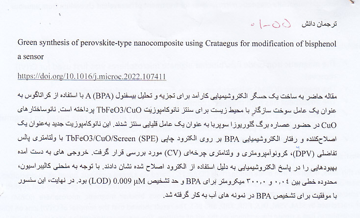 جهت ساخت حسگر الکتروشیمیایی به منظور اندازه گیری مورفین