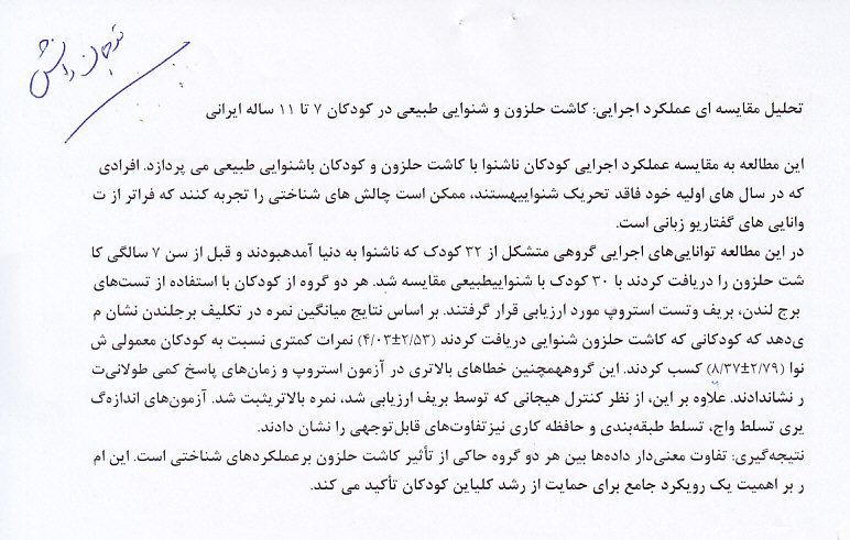 بررسي عملكرد اجرايي كودكان ٧ تا ١١ ساله